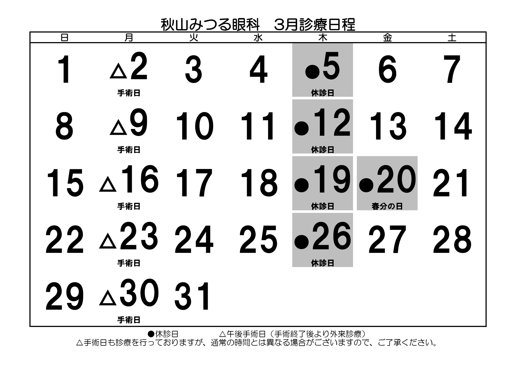 • 3月診療日程のお知らせ
