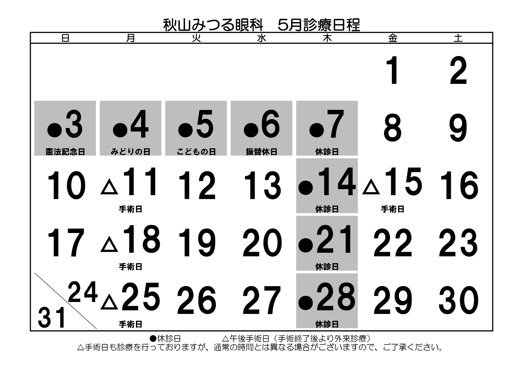 • 5月診療日程のお知らせ